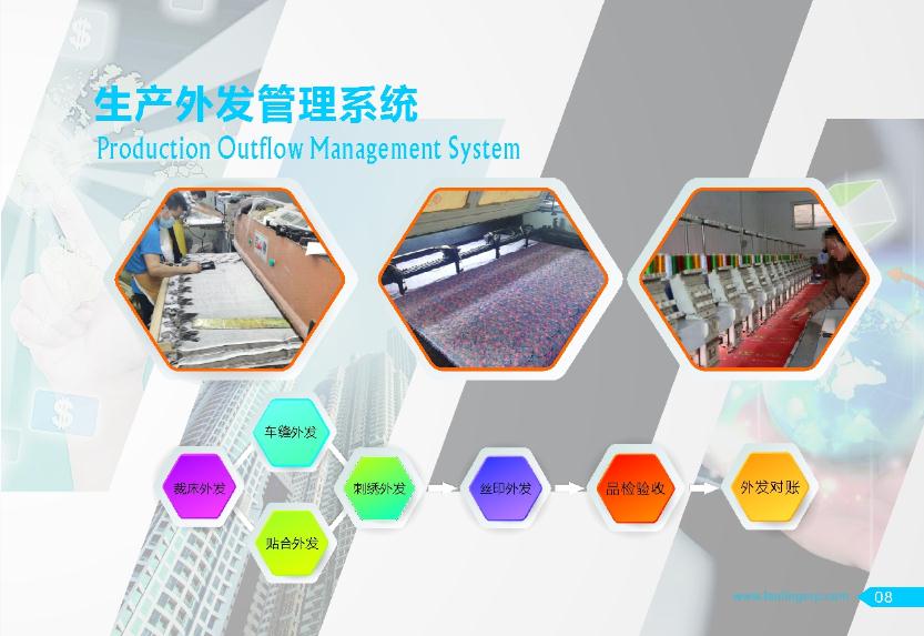 倉(cāng)庫(kù)、生產(chǎn)工藝、生產(chǎn)外發(fā)、貨品銷售、財(cái)務(wù)應(yīng)收應(yīng)付。